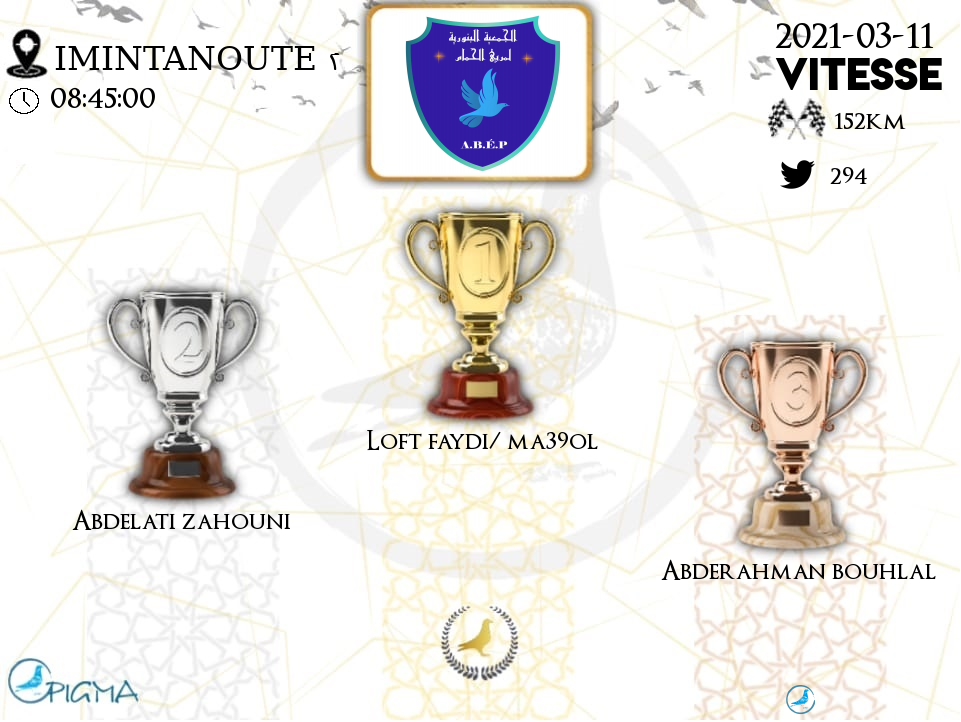 | 10 | PIGEONS ROYAUME | 2021-03-11 | 11:07:37 | 152.6507 | 1070.358 | 21-260 | NO | 87.6712 | 3.4014 |