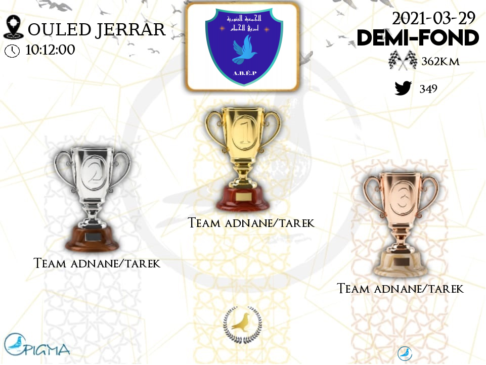 | 10 | TEAM ADNANE/TAREK | 2021-03-29 | 14:53:15 | 364.9811 | 1297.71 | 20-086470 | NO | 92.1739 | 2.8653 |