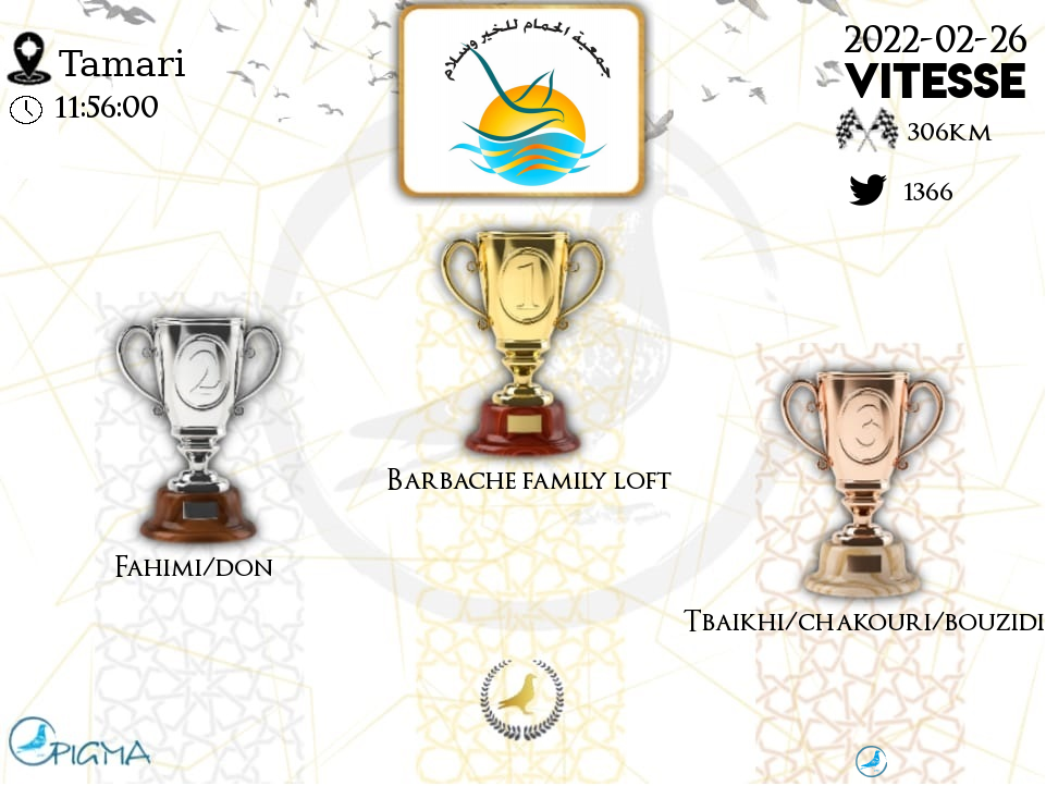 | 10 | TBAIKHI/CHAKOURI/BOUZIDI | 2022-02-26 | 17:06:37 | 309.6450 | 996.87 | 21-06***73 | F | 99.3411 | 0.7321 |