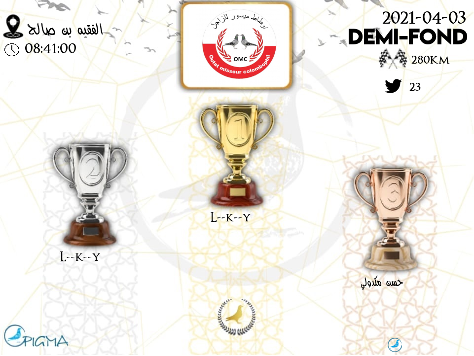 | 9 | LOFT ABDELLAOUI / OUSLIM | 2021-04-03 | 12:39:09 | 278.0085 | 1167.366 | 19-44***83 | NO | 0.0000 | 0.0000 |