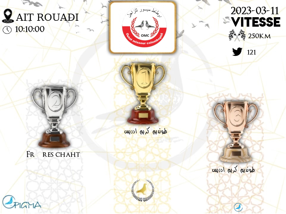 | 2 | FRèRES CHAHT | 2023-03-11 | 13:25:17 | 236.7373 | 1212.276 | 22-40***90 | NO | 97.4359 | 1.6529 |