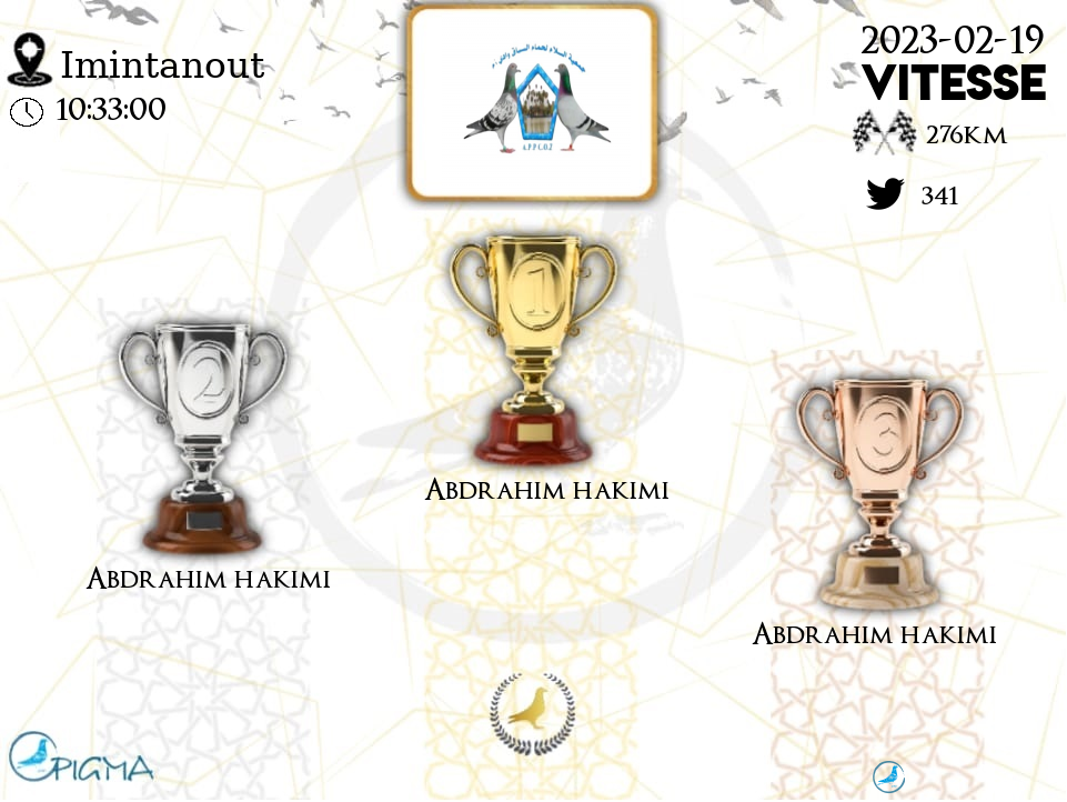 | 86 | ABDELHAFID ENNAJAH | 2023-02-19 | 14:54:06 | 281.2009 | 1076.988 | 21-47***58 | F | 24.1071 | 25.2199 |