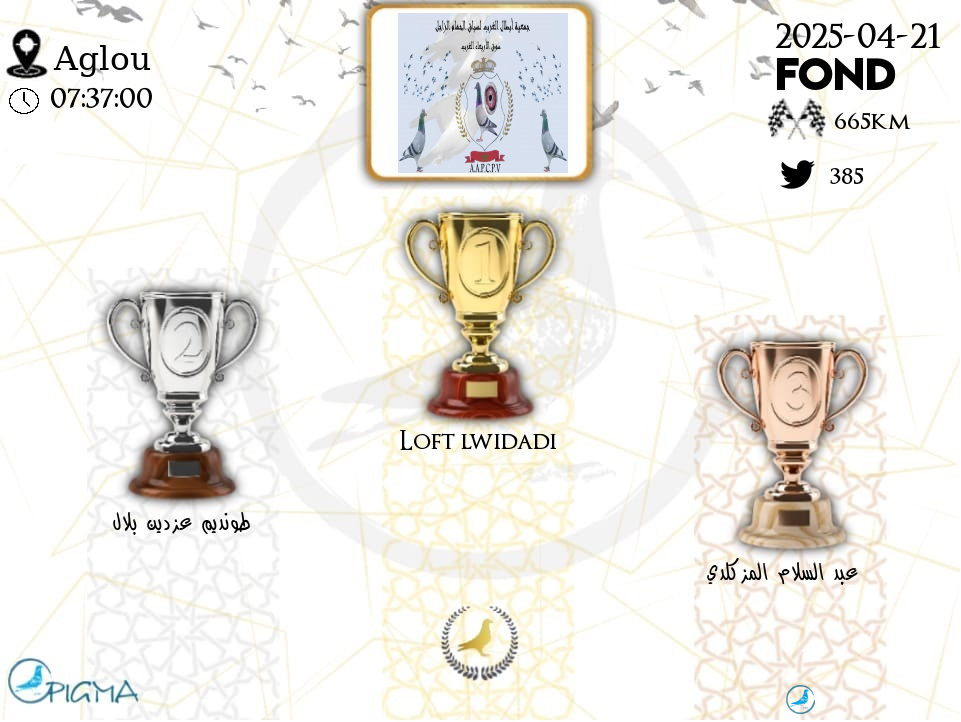 | 11 | LARBI BOUIDAT | 2025-04-21 | 20:20:23 | 665.5088 | 871.788 | 22-6 | F | 92.1260 | 2.8571 |