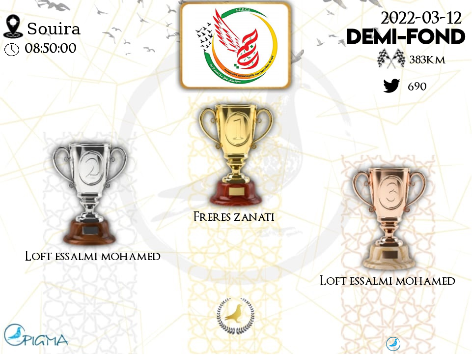 | 46 | FRERES ZANATI | 2022-03-12 | 14:07:32 | 382.0549 | 1203.198 | 21-00***01 | M | 73.8372 | 6.6667 |