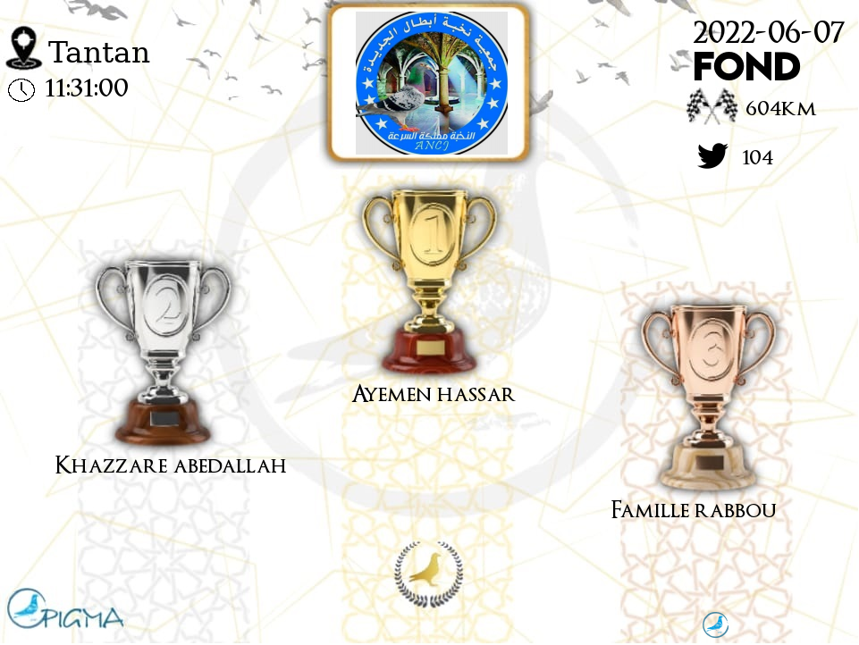 | 32 | JABRANE / TOUNSI (NEMOS) | 2022-06-08 | 18:49:12 | 604.3847 | 444.9894 | 21-20***76 | F | 8.8235 | 30.7692 |