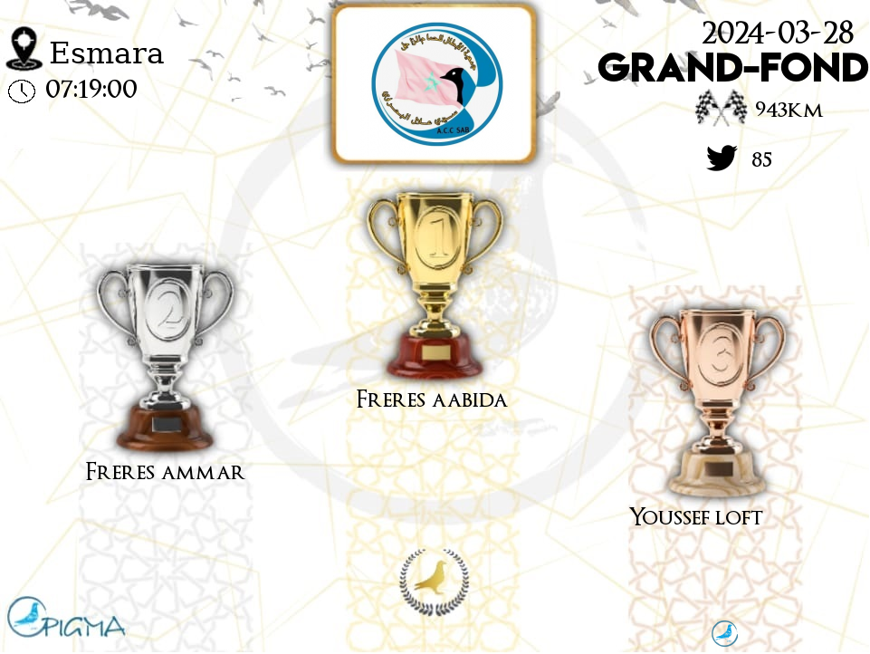 | Class | Nom | Nbr Pigeon constater | Pigeon engager | Pourcentage % | T.Point | P.Meilleur Colonie |