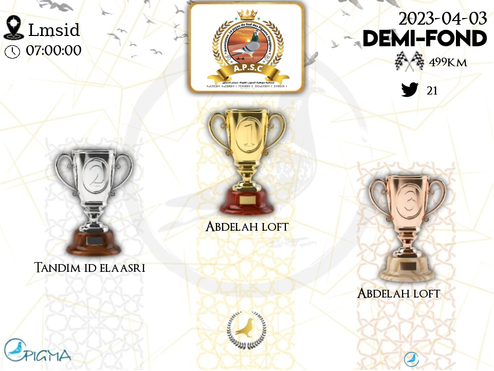 | Class | Nom | Nbr Pigeon constater | Pigeon engager | Pourcentage % | T.Point | P.Meilleur Colonie |