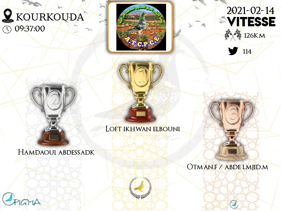 | 57 | OTMAN.F / ABDE LMJID.M | 2021-02-14 | 12:23:01 | 128.2386 | 772.446 | MA16-***69 | M | 50.8772 | 50.0000 |
