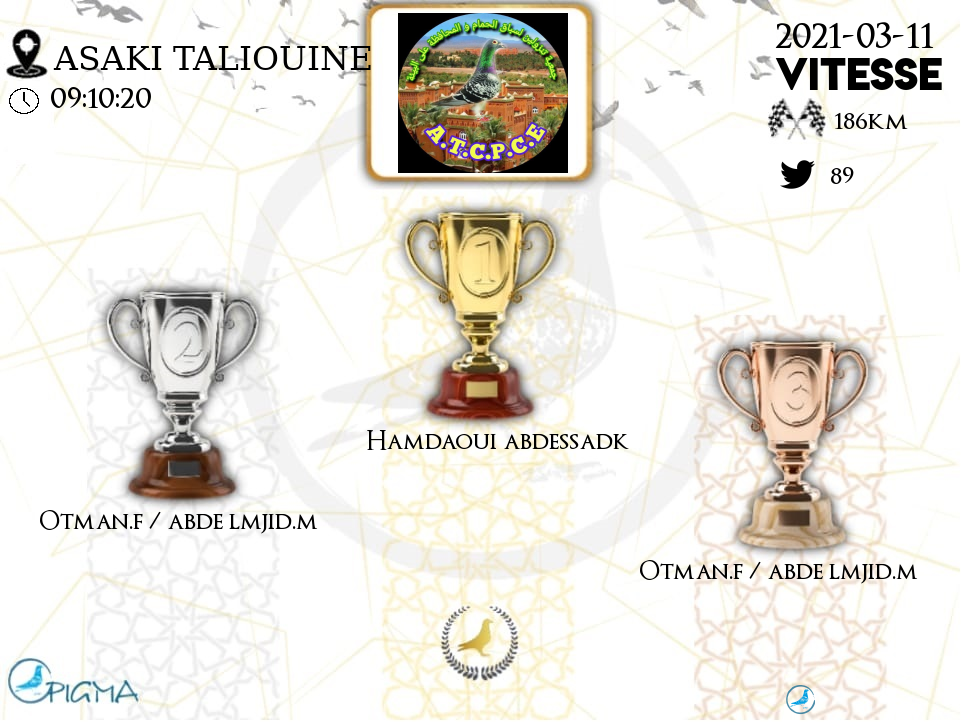 | 9 | OTMAN.F / ABDE LMJID.M | 2021-03-11 | 14:32:24 | 188.1382 | 584.1594 | MA19-***61 | F | 81.8182 | 10.1124 |