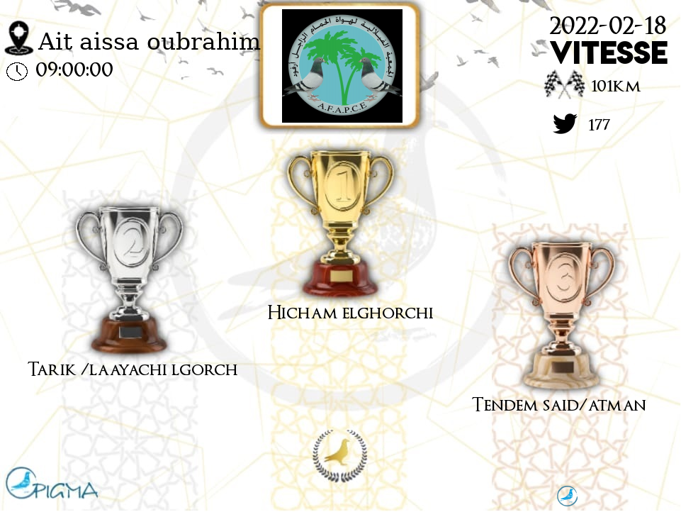 | 66 | FRèRES CHAKIR | 2022-02-18 | 14:43:42 | 100.6164 | 292.7448 | 21-9296 | F | 63.2768 | 37.2881 |