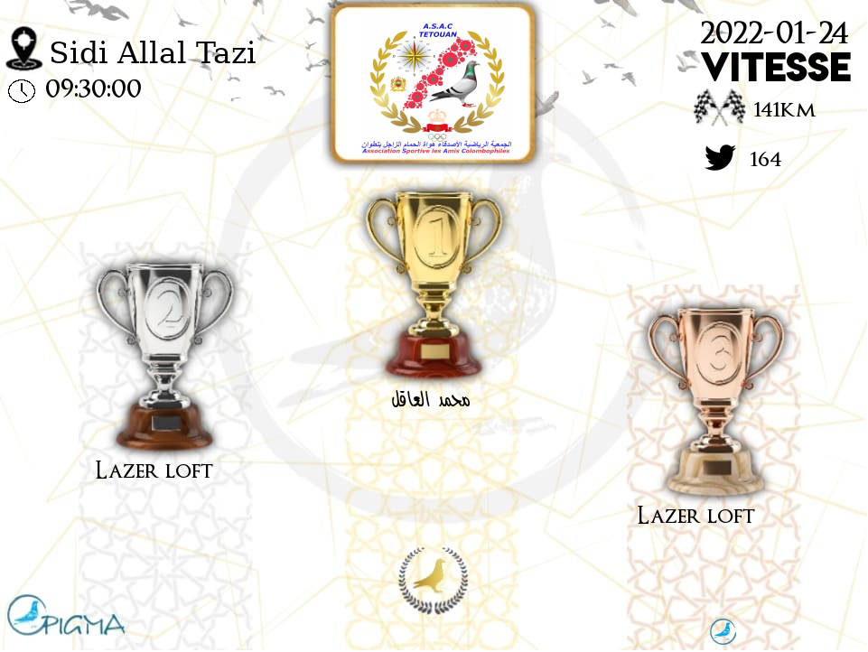 | 83 | TDM SAADOUNI_HICHOU | 2022-01-24 | 16:12:32 | 144.1997 | 358.2306 | 21-05***39 | M | 50.0000 | 50.6098 |