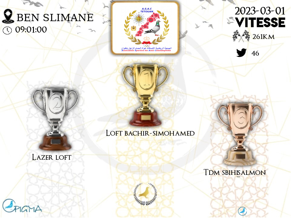 | Class | Nom | Nbr Pigeon constater | Pigeon engager | Pourcentage % | T.Point | P.Meilleur Colonie |