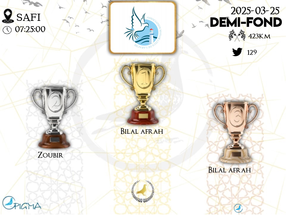| 9 | BILAL AFRAH | 2025-03-25 | 12:58:00 | 423.1776 | 1270.806 | 24-67***56 | F | 80.9524 | 6.9767 |