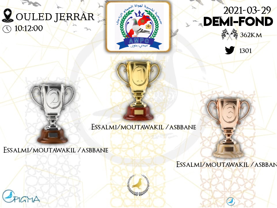 | 39 | TEAM HOUD / TOUFIQ | 2021-03-29 | 14:45:41 | 362.7975 | 1325.61 | 20-06***40 | F | 88.3077 | 2.9977 |
