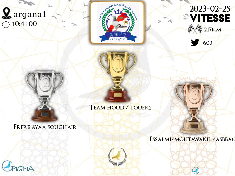 | 66 | TEAM HOUD / TOUFIQ | 2023-02-25 | 13:25:18 | 216.9946 | 1320.72 | 21-28***30 | F | 89.2027 | 10.9635 |