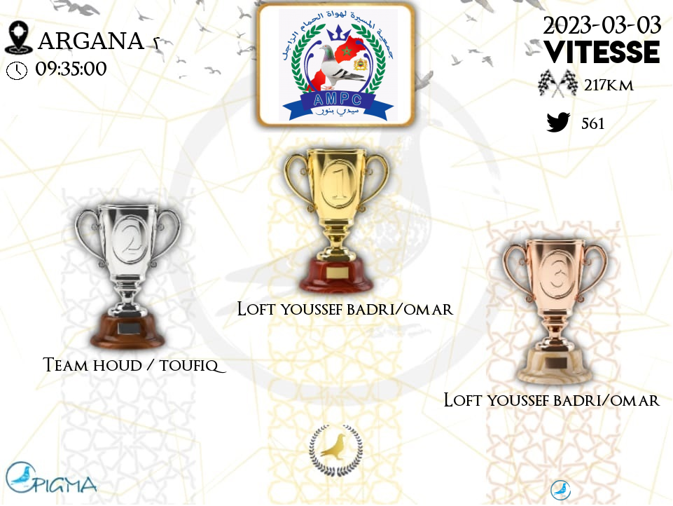 | 50 | TEAM HOUD / TOUFIQ | 2023-03-03 | 12:26:24 | 216.9946 | 1266.012 | 21-28***52 | F | 91.2656 | 8.9127 |