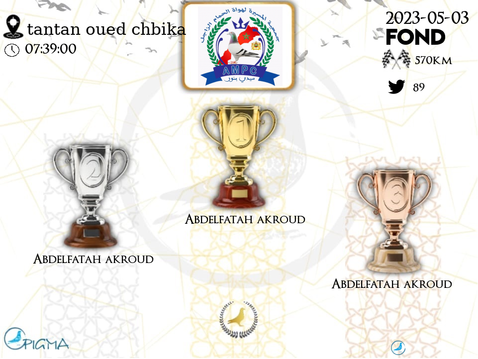 | 2 | ABDELFATAH AKROUD | 2023-05-03 | 16:26:14 | 537.6173 | 1019.694 | 22-56***81 | F | 98.8764 | 2.2472 |