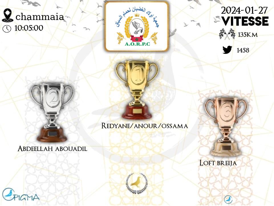 | 26 | REDYANE/ANOUR/OSSAMA | 2024-01-27 | 11:39:32 | 132.0529 | 1396.89 | 23-02***62 | M | 93.1319 | 1.7833 |