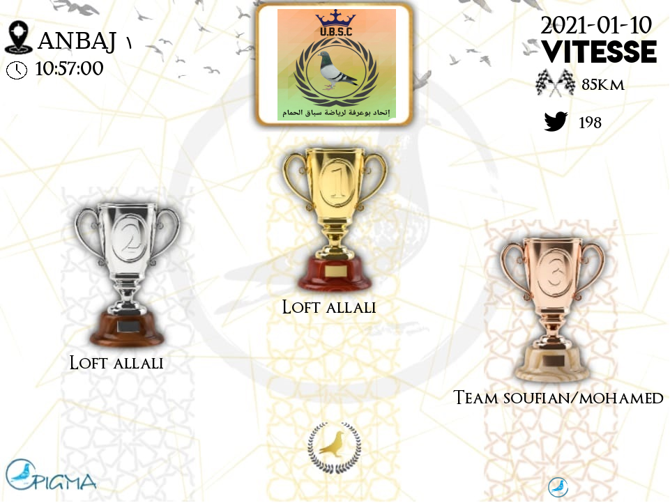 | 11 | TEAM SOUFIAN/MOHAMED | 2021-01-10 | 12:12:59 | 85.7631 | 1128.708 | 20-09***38 | M | 94.9495 | 5.5556 |